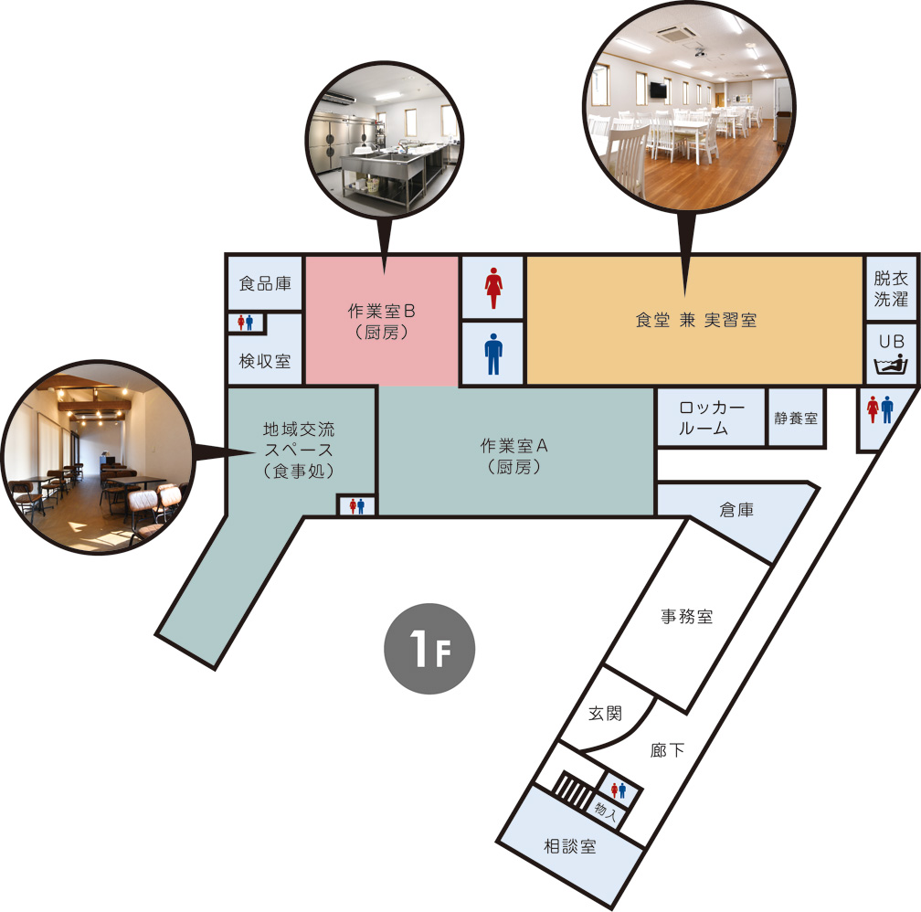 キッチン工房にて専門知識・接客対応を習得し、一般企業に移行するための支援を行います。